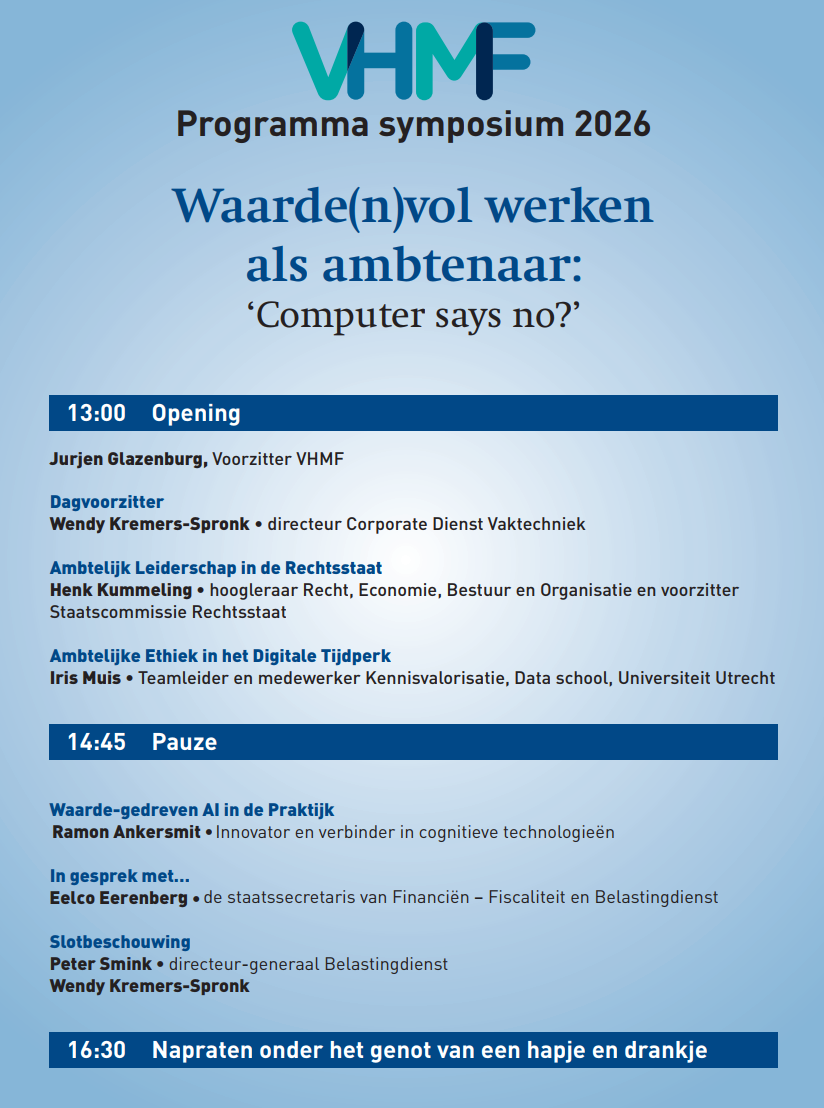 Digitalisering en Artificial Intelligence zijn overal. Ze bieden kansen voor slimmere en efficiëntere processen, maar brengen ook risico’s met zich mee wanneer zorgvuldigheid ontbreekt. Binnen de Belastingdienst zien we dat automatisering en datagedreven sturing de beslisruimte van medewerkers verkleinen. Daardoor kunnen belangrijke waarden zoals rechtsstatelijkheid, menselijke maat en professioneel oordeel onder druk komen te staan. Juist nu technologie steeds bepalender wordt, moeten we alert blijven op onze publieke waarden. Wanneer en hoe doen we ons werk écht goed?